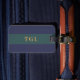 Etiqueta de bagagem com monograma personalizado projetada com um design simples e moderno de bloco de cor.