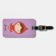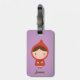 Garotas que adoram o conto de fadas do capô de equitação vermelha vão adorar esta etiqueta de bagagem para suas bolsas! Tem uma menina num carregando vermelho de boné, uma cesta pequena. Personalize com o nome da criança na esquina. O plano de fundo roxo pode ser alterado no modo de personalização. Faz um presente de excelente para as meninas para seus aniversários ou Natal.