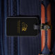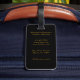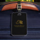 Etiqueta de Bagagem a preto e dourado elegante. Características personalizadas (6): monograma de 2 letras, espaço para telefone, correio, sítio web, localização e suporte social, ou qualquer outra informação.