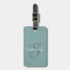 Etiqueta De Bagagem Couro Verde Dusty Monograma com Script Elegante