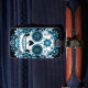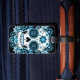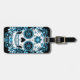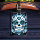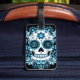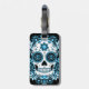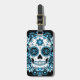 O crânio de açúcar Dia de los Muertos em tons coloridos de azul cercados por flores.