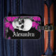 Crânio gótico e design de borboleta magenta púrpura bonito, com nome personalizado