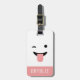 Cara Kawaii Bonita, etiqueta de bagagem. Apresenta a guia cor-de-rosa para o nome nas linhas frontal e modelo para o nome e endereço na parte traseira com a coordenação do fundo cor-de-rosa.