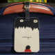 Esta design bonitinha, mas assustadora, mostra uma criança de vestido vermelho esperando na frente de uma porta em um quarto escuro. A porta está cercada pelo monstro sombra com boca aberta e dentes afiados. Este é um design para amantes de halloween um pouco assustador, mas fofo. Você pode personalizar o nome!