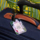 As etiquetas de bagagem ajudam-no a identificar as suas bagagens, mochilas, bolsas de ginástica, bolsas de golfe e mais de outras bolsas no carrossel de bagagem, no comboio ou no ônibus, e a evitar perdas. Retire fácil e rapidamente sua mala do rebanho com esta etiqueta de bagagem que tem um design único na frente e atrás para seu nome, endereço, cidade, estado e código postal. Altere o texto nos campos fornecidos. Você pode alterar o estilo, o tamanho e a cor da fonte.