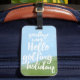 Adeus, trabalho. Olá, feriado de golfe! O saco que diz tudo. Fundo de aquarela com uma citação de fontes moderna com script de pincel - esta etiqueta de bagagem é ideal para viajantes que gostam de jogar golfe nos cursos mais bonitos. Pop um desses na sua bagagem e "antecipar" o trabalho diário por uma ou duas semanas.