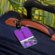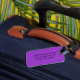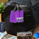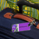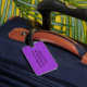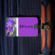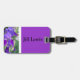 Esta etiqueta floral da íris de cor brilhante irá sobressair no terminal de bagagem. Susan Golis desenhou esta etiqueta de viagem de uma fotografia original do seu jardim de íris.