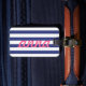 Acessorize sua bagagem com esta adorável etiqueta azul e branca de bagagem listrada. Estes seriam perfeitos para a empregada ou presentes de festa de casamento da noiva! Personalize com seu nome, informações ou monograma.