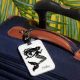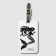A etiqueta de bagagem personalizada é mostrada em um impressão de sereia de rico preto e branco e tem um slot de placa no outro lado. Personalize esta etiqueta e altere o nome do exemplo para o seu com este modelo.