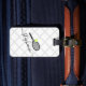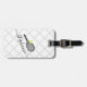 ID de viagem da etiqueta de mala tênis, branca e negra e cinza, personalizada, com um monograma da raquete tênis, em uma letra elegante, fofa e feminina com um plano de fundo de rede sutil.
