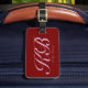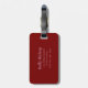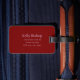 Etiqueta de bagagem de viagem. Uma etiqueta de bagagem é usada para identificar facilmente sua mala caso ela se perca durante o viagem, pois contém suas informações de contato, como nome, número de telefone e endereço, permitindo que alguém chegue a você se encontrar sua mala separada de você.