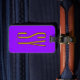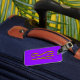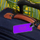 Etiqueta de bagagem de viagem. Uma etiqueta de bagagem é usada para identificar facilmente sua mala caso ela se perca durante o viagem, pois contém suas informações de contato, como nome, número de telefone e endereço, permitindo que alguém chegue a você se encontrar sua mala separada de você.