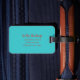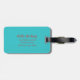 Etiqueta de bagagem de viagem. Uma etiqueta de bagagem é usada para identificar facilmente sua mala caso ela se perca durante o viagem, pois contém suas informações de contato, como nome, número de telefone e endereço, permitindo que alguém chegue a você se encontrar sua mala separada de você.