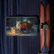 Ele é de acrílico, muito bonito e chegou antes do previsto. Impressão muito boa e cores firmes.