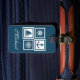 Design com temas náuticos, com roda de vela, barco à vela, bússola e decoração da âncora, em quadrados brancos e azuis com faixas