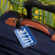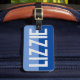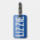 Etiqueta de bagagem de nome. Faça com que a escolha do seu nome seja corajosamente mostrada em uma etiqueta de bagagem de dois tons. Exemplo mostra o nome Lizzie. Personalize com sua escolha de nome curto.