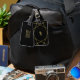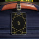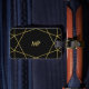 Este Tag à moda da bagagem tem um fundo preto e um design geométrico do ouro do falso. Seu monograma vai na parte dianteira e em sua informações de contacto na parte traseira.
