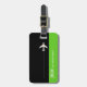Um item elegante com a imagem gráfica de um plano branco sobre fundo preto e verde, personalizado com seu próprio nome e suas iniciais, para identificar seus pertences no próximo viagem
