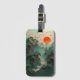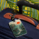 O produto principal é uma etiqueta de bagagem, claramente visível no centro da tela.