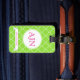 Um verde limão vibrante e um padrão branco enfeitam esta etiqueta de bagagem fofa. Personalize esta etiqueta de bagagem mudando as letras do monograma para atender às suas necessidades. O design é da arte original.