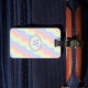 Linhas de ondas rolantes fazem um padrão simples e divertido num arco-íris de cores pastéis de rosa a lavanda criando um padrão bonito para primavera. Personalize esta etiqueta de bagagem com a sua inicial na frente e os detalhes na parte traseira para facilitar a localização da bagagem quando você estiver viagem.
