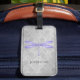 Adicione um toque personalizado à sua bagagem com uma Etiqueta de Bagagem Personalizada de Dragonfly Damask Púrpura. Design de etiqueta de bagagem apresenta uma libélula colorida contra uma cor damasco de cinza elegante. Itens de presentes adicionais disponíveis com este design, bem como uma variedade de cores.