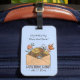 Etiqueta de bagagem "Ela Voa" com cartão de endere