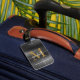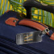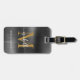 Marcador de bagagem personalizado feminino elegante moderno glamoroso em metal preto e dourado com nome inicial monograma. Este design apresenta um primeiro nome em uma linda caligrafia com rabiscos (ou tipografia) com monograma inicial, nome completo, informações de endereço em dourado sobre fundo de folha metálica preta. São fáceis de personalizar. Presente feminino elegante para casamento, aniversário de 16 anos, chá de noiva, formatura e para quem ama estilo glamoroso.
