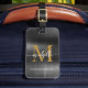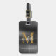 Etiqueta De Bagagem Elegante Metal Preto Inicial Monograma Dourado Scr