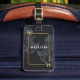 Viajante com estilo classe executiva com esta etiqueta para bagagem personalizável que apresenta um clássico padrão paisley preto e cinza com um emblema dourado elegante e nome e iniciais personalizáveis na frente. A parte traseira tem espaço para adicionar um nome, endereço, número de telefone e endereço de e-mail. Modifique o texto na frente e atrás para criar um presente elegante para homens que gostam de viajar com estilo.