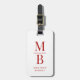 Etiqueta De Bagagem Vermelha E Branca Elegante Monogramada.