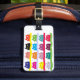 Cartoon, bonito e colorido, etiqueta de bagagem de gatos com endereço de volta na parte de trás.