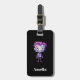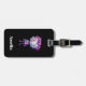 Uma etiqueta de bagagem com uma bela ilustração. Monstro de Frankenstein com cabelo rosa e roxo e um terno e gravata.