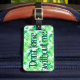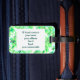 Esta etiqueta engraçada e engraçada tem um padrão de folhas verdes cintilantes em ambos os lados. A frente diz Não saia sem mim! numa sombra de cor escura e uma fonte divertida. A parte de trás tem um espaço reservado branco para o seu texto personalizado em uma fonte diferente, mas com a mesma cor verde escura. Este design é totalmente personalizável.