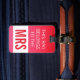 Está aqui um Tag ultra chique da bagagem criado especialmente para a metade fêmea dos casais. Se o fundo colorido vibrante, ultra feminino do rosa quente não o dá afastado, as grandes letras de bloco no branco e no rosa quente de coordenação indicando que o saco pertence à Sra.