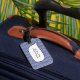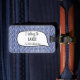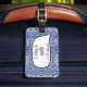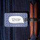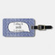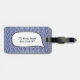 A bagagem personalizada etiqueta para ele. Com teste padrão geométrico no azul.