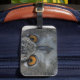 Para fãs de coruja! Acompanhe sua bagagem com esta etiqueta de bagagem acrílica que mostra a foto de uma Coruja de Águia com olhos laranja.