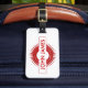 Etiqueta de bagagem personalizada com explosão vermelha.