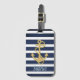 Etiqueta De Bagagem Faixa Azul e Âncora Dourada Náutica