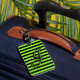 Etiqueta de bagagem de stripe personalizada. O texto pode ser personalizado.