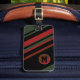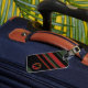 Um design gráfico e moderno striped para um viajante na moda, personalizado com sua inicial em um círculo com faixas diagonais de cores diferentes e elegantes... para viagem em estilo.