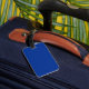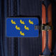 Luggage Tag with design with a flag of historic county of Sussex, in England, Great Britain; blue flag with six gold martlets