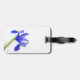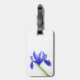 Uma fotografia de uma flor da íris roxa e amarela contra um fundo branco.