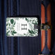 A etiqueta de mala botânica de cor aquática elegante apresenta o seu monograma inicial de solteiro e o seu nome em caracteres clássicos fora do preto, emoldurados por folhas verdes da floresta escura e folhagem. Personalize o reverso com suas informações de contato em letras brancas em um fundo de carvão profundo de coordenação.