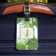 Etiqueta De Bagagem Folhas verdes e flores monograma tropical