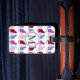 Teste padrão bonito da silhueta do gato no roxo e nos azuis com corações cor-de-rosa in-between. Os Tag da bagagem com personalização opcional no dianteiro e reverso, fazem sua mala de viagem estar para fora.