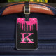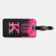 Etiqueta De Bagagem Girly Black Hot Pink Glitter Drives Nome do Monogr