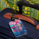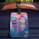 Melhore sua bagagem com este design de etiqueta viagem exclusivo. Apresentando gotas de chuva em uma janela e luzes vibrantes de um barco, é perfeito para aqueles que amam a beleza das noites chuvosas e paisagens de cidades.