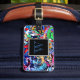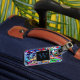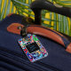 Personalizar sua bagagem facilita a identificação. Este design inspirado no grafite é colorido e único. Mude o monograma.