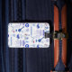 A minimalist design of Greek elements in shades of blue and white, perfect for travel lovers.
